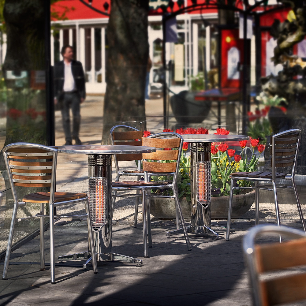 Tavolini che diffondono un calore uniforme, grazie ad uno speciale riscaldatore a raggi infrarossi incastonato nella gamba. Soluzione ideale sia per interni che per esterni, non teme l'acqua ne il vento, è sicuro per i bambini perchè non brucia al tatto e sfrutta una speciale lampada a risparmio energetico.. |